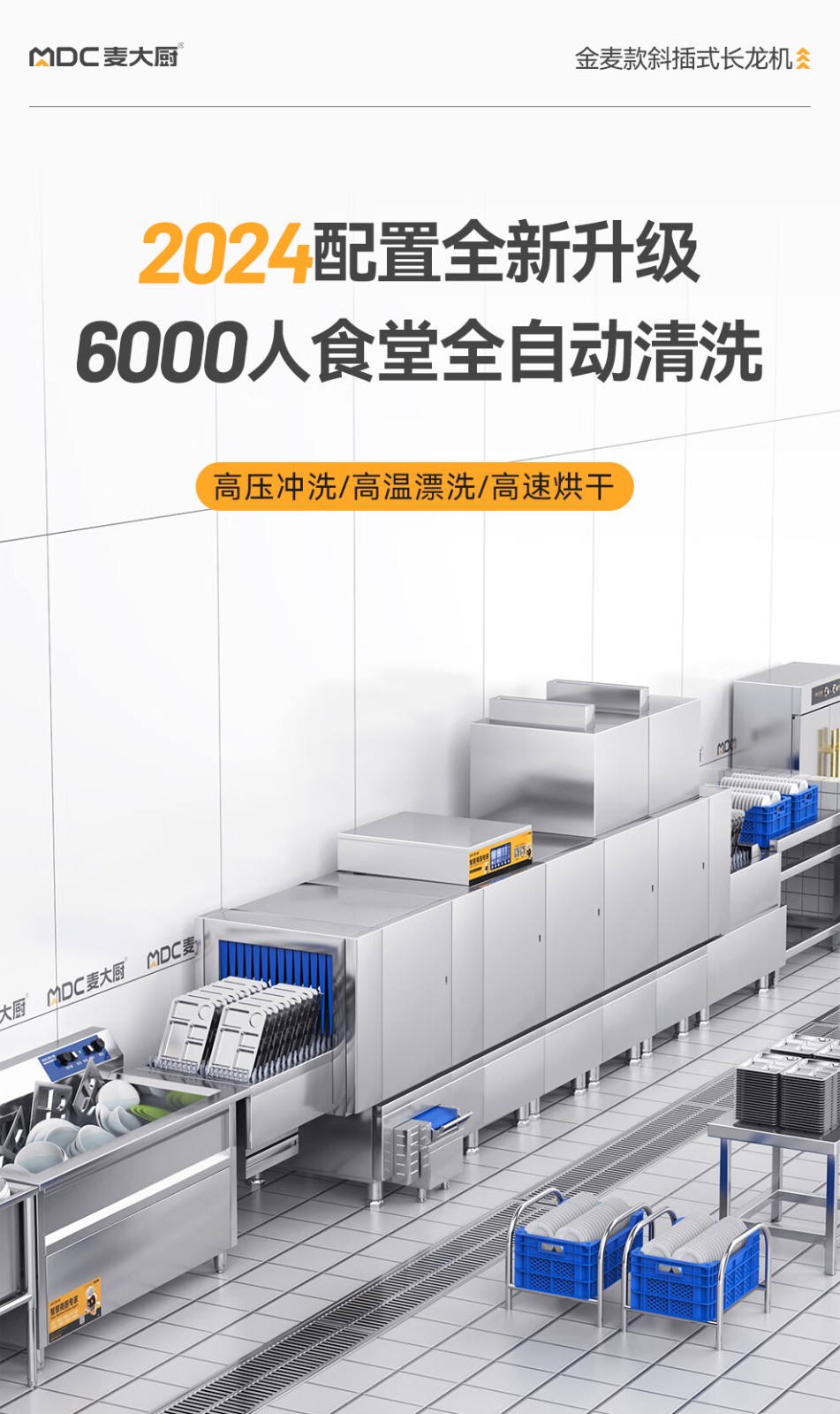 麥大廚金麥款斜插式觸屏熱回收2.95m雙缸雙噴洗碗機(jī)